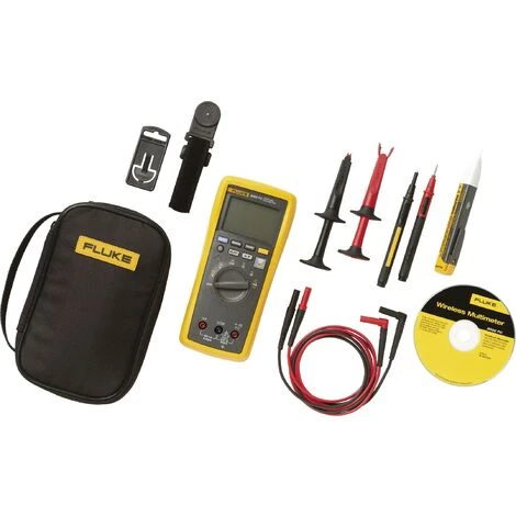 Fluke 3000 FC Multimeter + Batterien + Benutzerhandbuch auf CD + Fluke 1ACII berührungsloser Spannungsprüfer + Fluke TL224 Messleitungen + Fluke TP220 Industrielle Messspitzen + Fluke AC220 Industrielle Krokodilklemmen + Gepolsterte Tragetasche + TPAK ToolPak™ Messgerät-Anhängeschlaufe mit