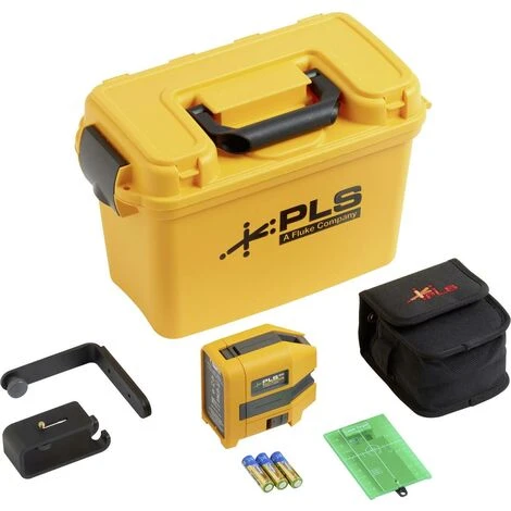Laser-Nivelliergerät PLS 3G, Leinentasche PLS, Alkali-Batteriesatz PLS BP5, Ständer PLS FS, magnetische L-Halterung PLS MLB, grünreflektierendes Ziel PLS GRT4, Sicherheitsdatenblatt und